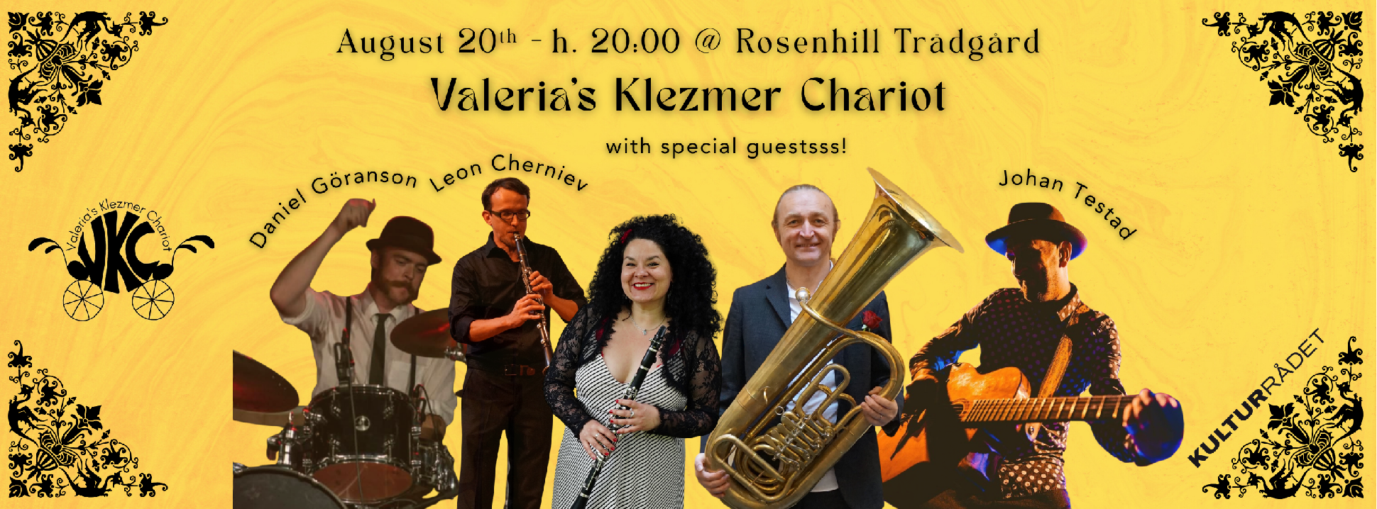 She performs traditional and original Klezmer and Yiddish repertoires with her band, Valeria's Klezmer Chariot, and she is the organiser and leader of the OAKJS - Open-Air Klezmer Jam Sessions - Stockholm.